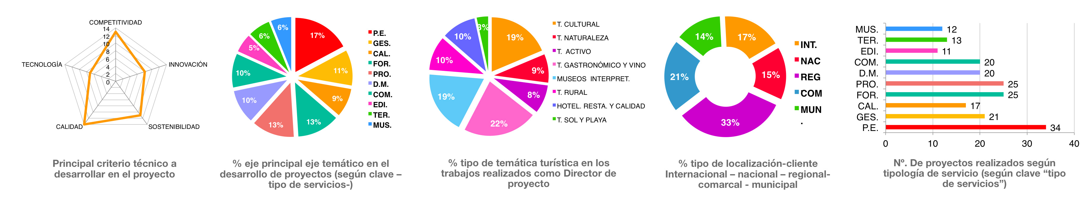 P.E. Planificación Estratégica GES. Gestión CA. Calidad FOR. Formación PRO Promoción D.M. Desarrollo de mercado COM. Comunicación EDI. Edición TER. Territorio MUS. Contenidos y museos